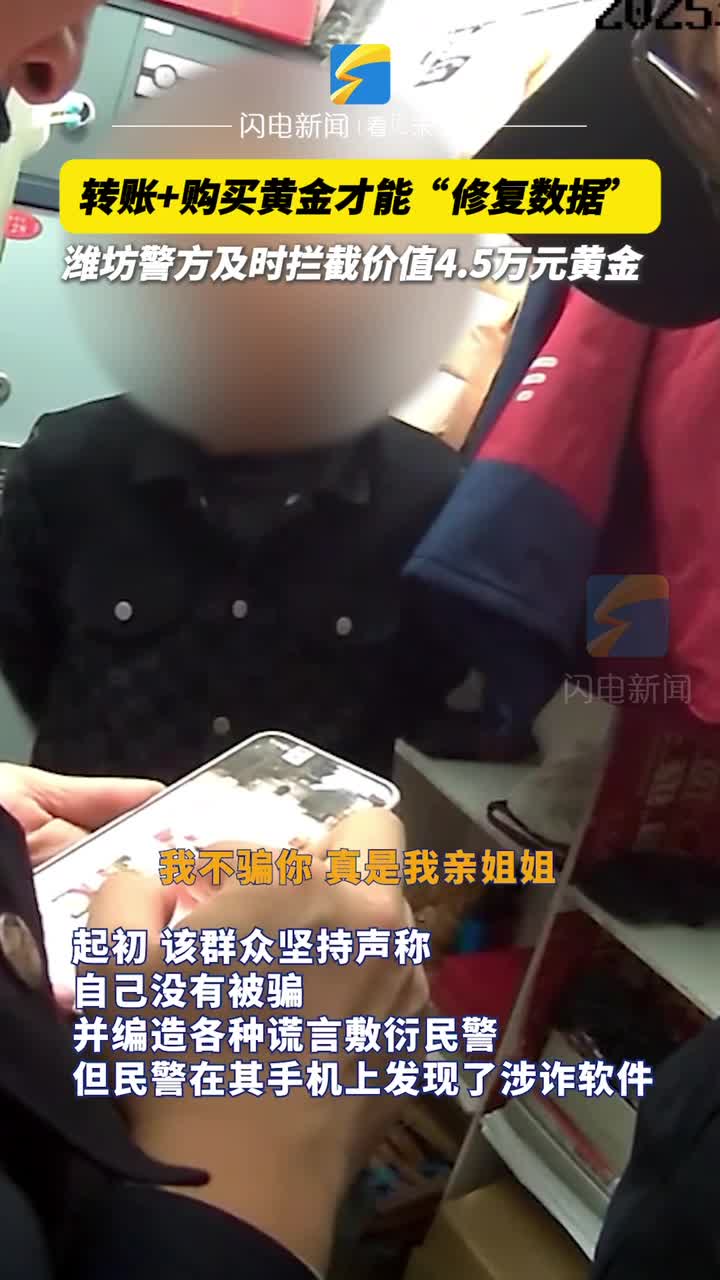 轉賬+購買黃金才能“修復數據” 濰坊警方及時攔截價值4.5萬元黃金