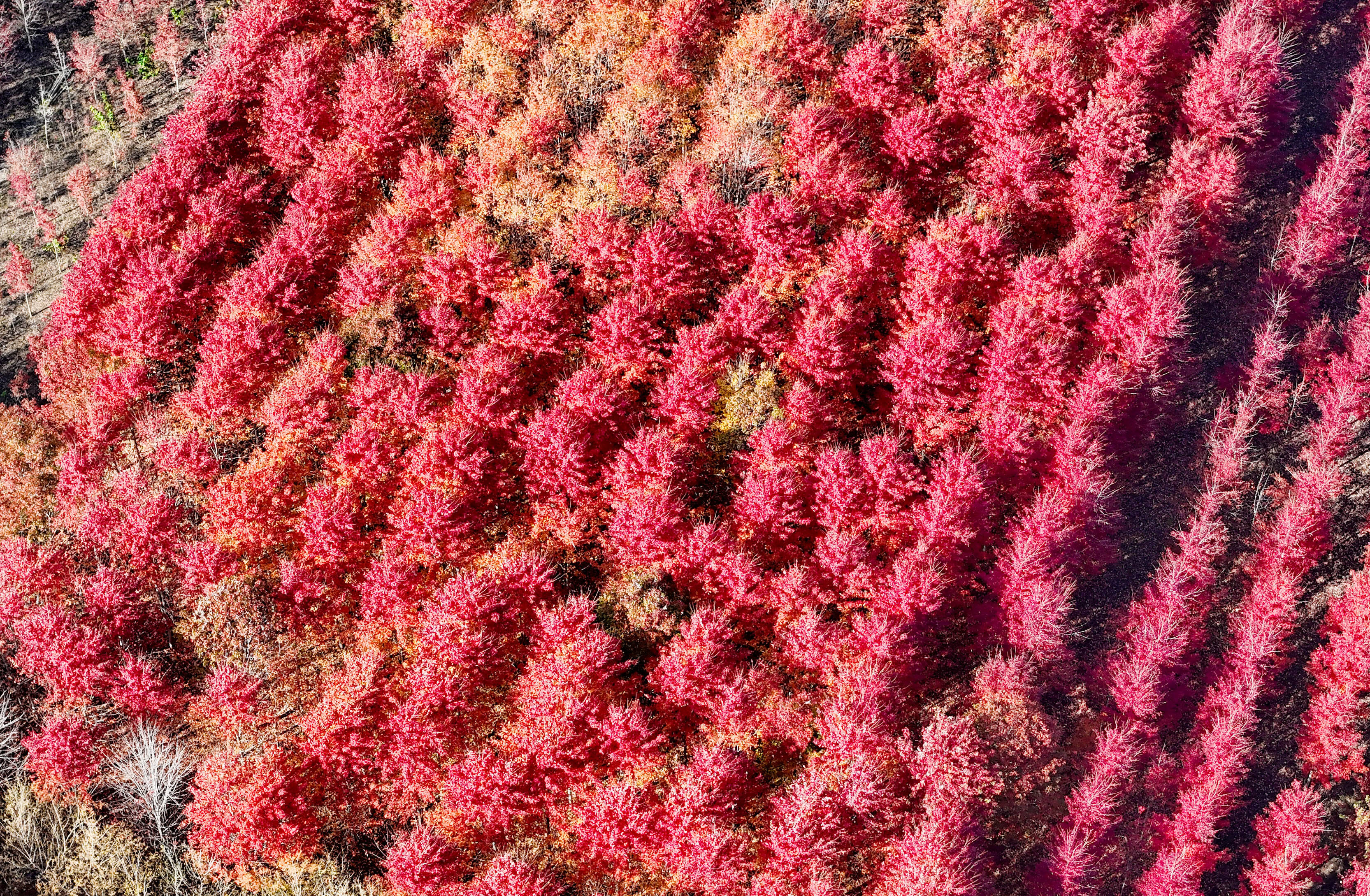 山東萊西千畝紅楓層林盡染 繪就鄉村振興新畫卷